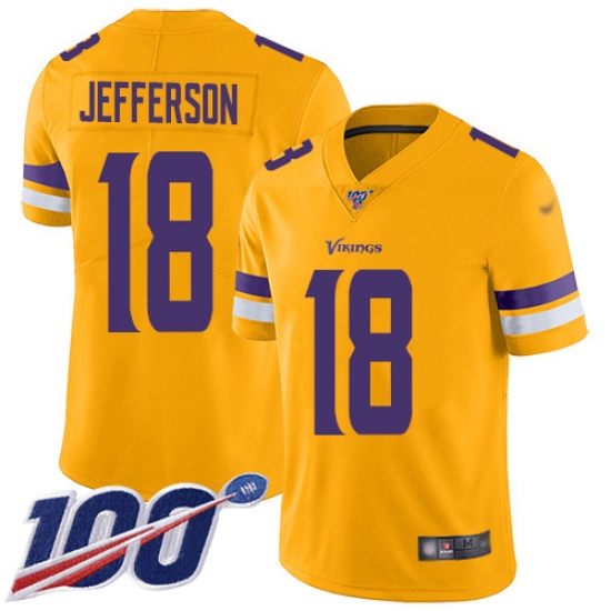 Men's Minnesota Vikings #18 Justin Jefferson Gold Stitched NFL Limited Inverted Legend 100th Season Jersey