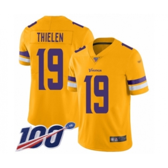 >Men's Minnesota Vikings #19 Adam Thielen Limited Gold Inverted Legend 100th Season Football Jersey