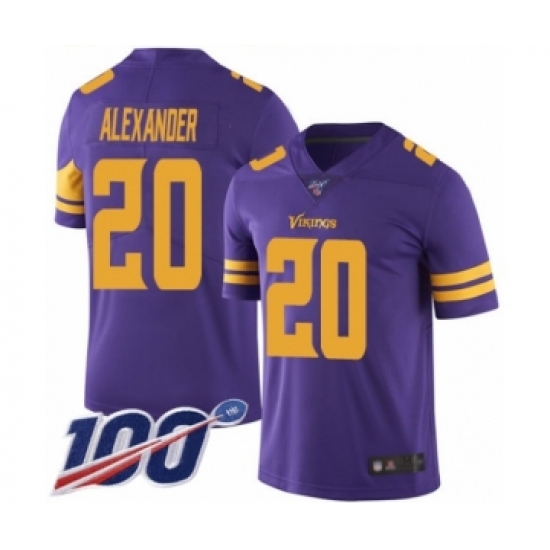 >Men's Minnesota Vikings #20 Mackensie Alexander Limited Purple Rush Vapor Untouchable 100th Season Football Jersey