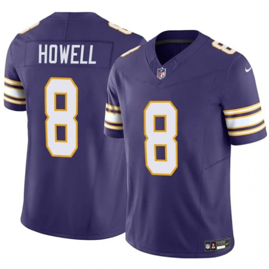 >Men's Minnesota Vikings #8 Sam Howell Purple 2023 F.U.S.E. Throwback Vapor Untouchable Limited Football Stitched Jersey