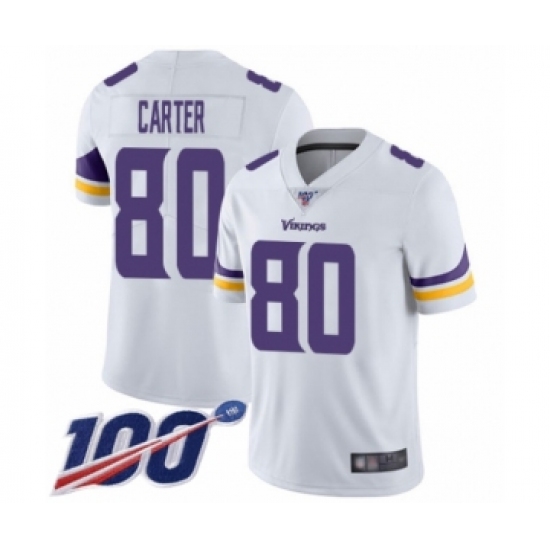 >Men's Minnesota Vikings #80 Cris Carter White Vapor Untouchable Limited Player 100th Season Football Jersey