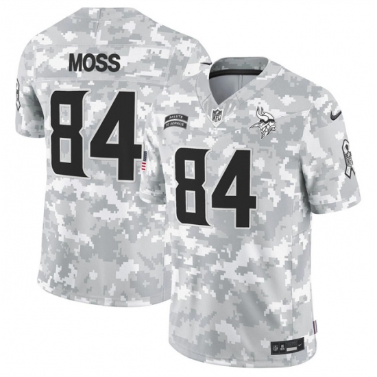 >Men's Minnesota Vikings #84 Randy Moss 2024 F.U.S.E Arctic Camo Salute To Service Limited Stitched Football Jersey