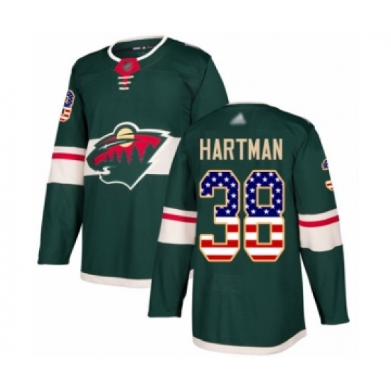 Men's Minnesota Wild #38 Ryan Hartman Authentic Green USA Flag Fashion Hockey Jersey
