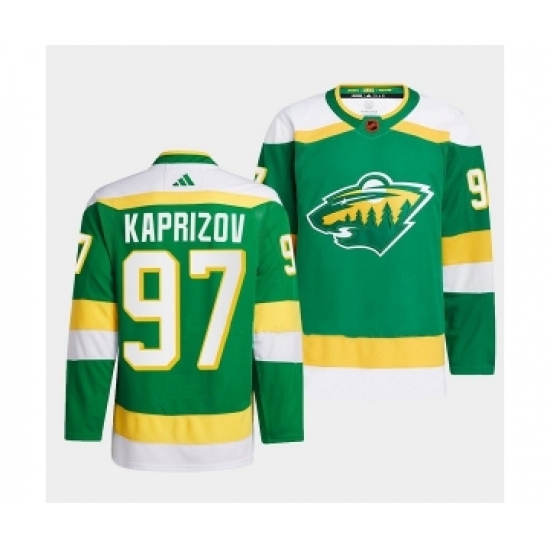 >Men's Minnesota Wild #97 Kirill Kaprizov Green 2022-23 Reverse Retro Stitched Jersey