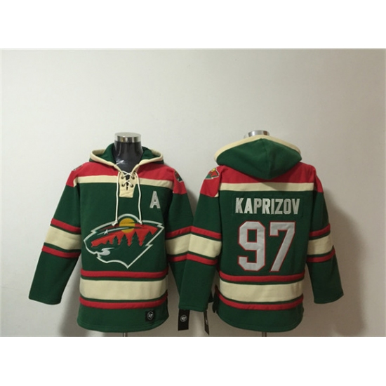 Men's Minnesota Wild #97 Kirill Kaprizov Green Lace-Up Pullover Hoodie