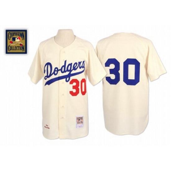 Men's Mitchell and Ness 1962 Los Angeles Dodgers #30 Maury Wills Replica Cream Throwback MLB Jersey