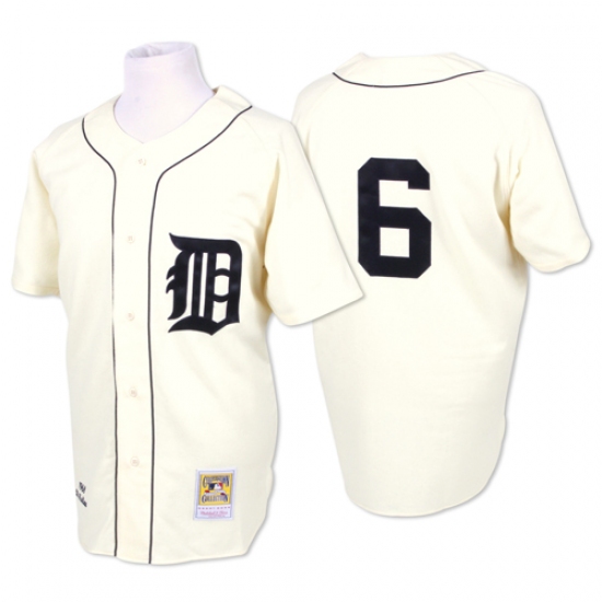 Men's Mitchell and Ness 1968 Detroit Tigers #6 Al Kaline Authentic Cream Throwback MLB Jersey