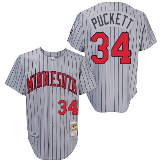 Home>MLB>Minnesota Twins>Kirby Puckett>Men's Mitchell and Ness 1987 Minnesota Twins #34 Kirby Puckett Authentic Grey Throwback MLB Jersey
