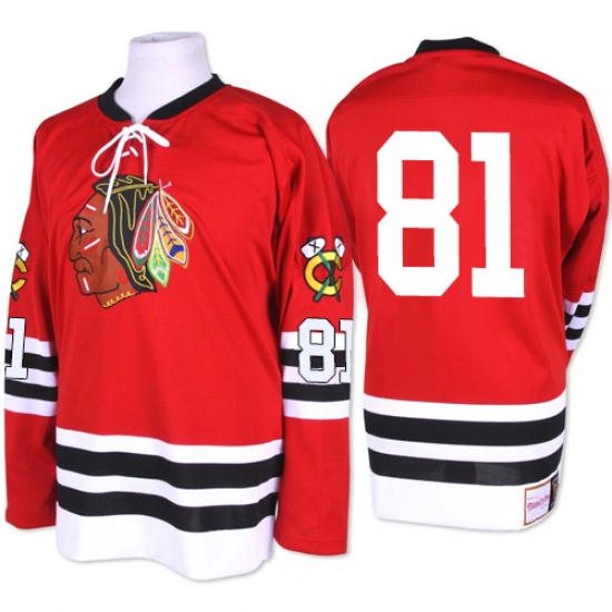 Men's Mitchell and Ness Chicago Blackhawks #81 Marian Hossa Authentic Red 1960-61 Throwback NHL Jersey