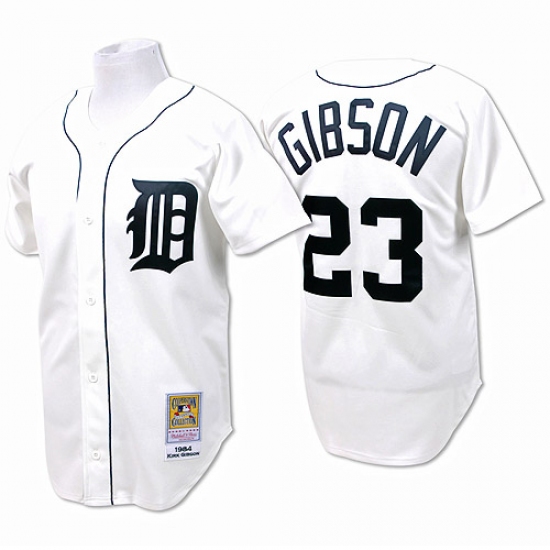 Men's Mitchell and Ness Detroit Tigers #23 Kirk Gibson Authentic White Throwback MLB Jersey