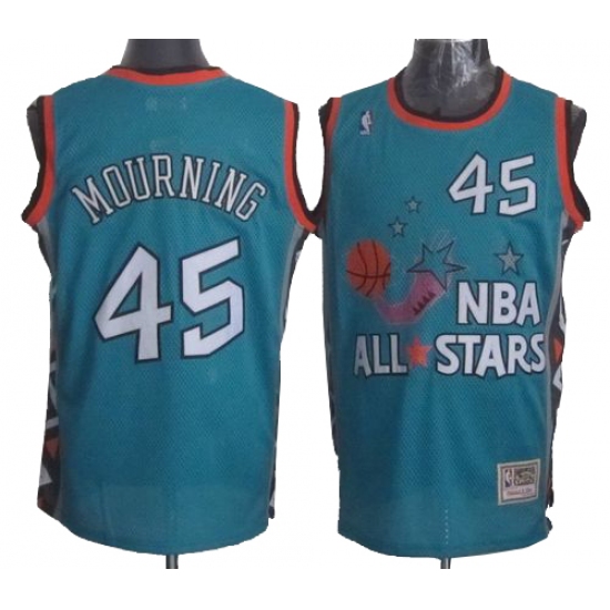 Men's Mitchell and Ness Miami Heat #45 Alonzo Mourning Authentic Light Blue 1996 All Star Throwback NBA Jersey