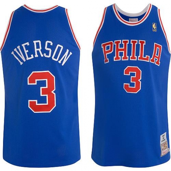 Men's Mitchell and Ness Philadelphia 76ers #3 Allen Iverson Authentic Blue Throwback NBA Jersey