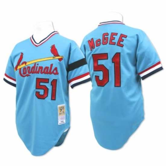 >Men's Mitchell and Ness St. Louis Cardinals #51 Willie McGee Authentic Blue Throwback MLB Jersey