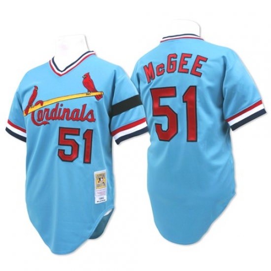 Home>MLB>St. Louis Cardinals>Willie McGee>Men's Mitchell and Ness St. Louis Cardinals #51 Willie McGee Replica Blue Throwback MLB Jersey