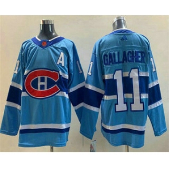 Men's Montreal Canadiens #11 Brendan Gallagher Blue 2022 Reverse Retro Stitched Jersey