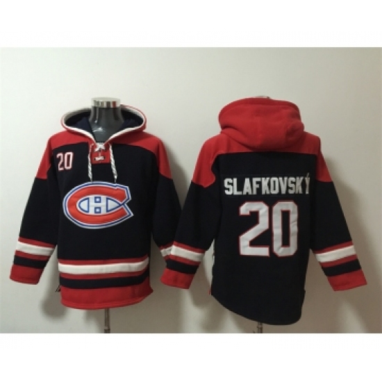 >Men's Montreal Canadiens #20 Juraj Slafkovsky Navy Red Lace-Up Pullover Hoodie