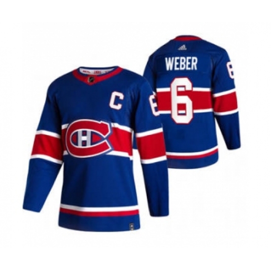 >Men's Montreal Canadiens #6 Shea Weber Blue 2020-21 Reverse Retro Alternate Hockey Jersey