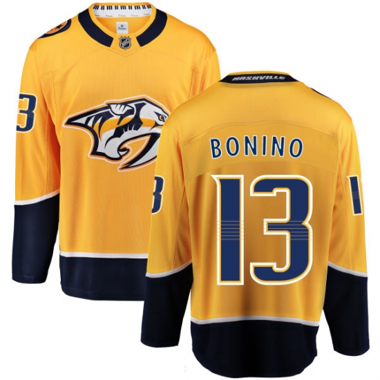 Home>NHL>Nashville Predators>Nick Bonino>Men's Nashville Predators #13 Nick Bonino Fanatics Branded Gold Home Breakaway NHL Jersey