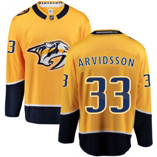 Home>NHL>Nashville Predators>Viktor Arvidsson>Men's Nashville Predators #33 Viktor Arvidsson Fanatics Branded Gold Home Breakaway NHL Jersey