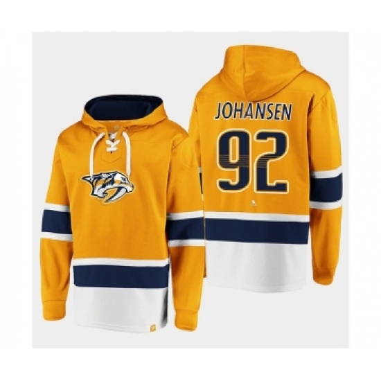 >Men's Nashville Predators #92 Ryan Johansen Gold Ageless Must-Have Lace-Up Pullover Hoodie
