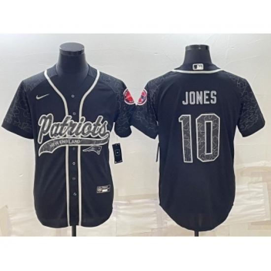 Men's New England Patriots #10 Mac Jones Black Reflective With Patch Cool Base Stitched Baseball Jersey