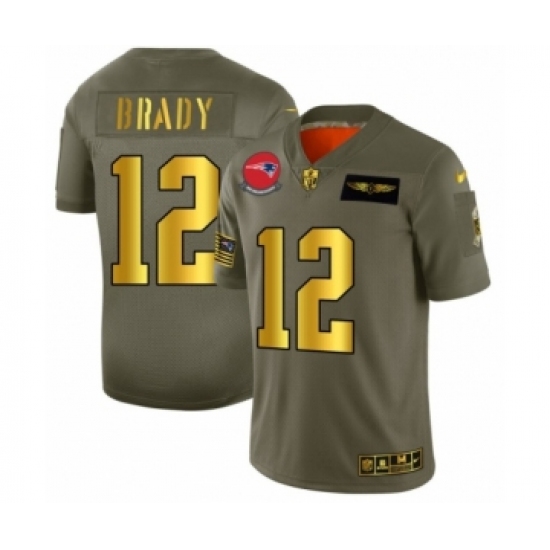 >Men's New England Patriots #12 Tom Brady Limited Olive Gold 2019 Salute to Service Football Jersey