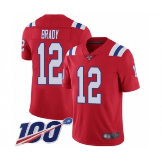 Men's New England Patriots #12 Tom Brady Red Alternate Vapor Untouchable Limited Player 100th Season Football Jersey