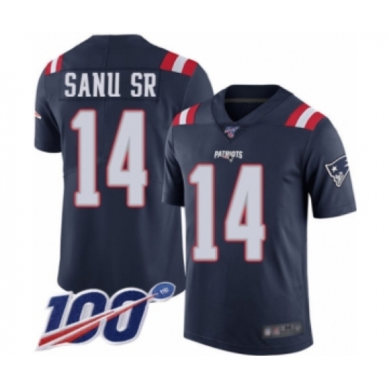 >Men's New England Patriots #14 Mohamed Sanu Sr Limited Navy Blue Rush Vapor Untouchable 100th Season Football Jersey