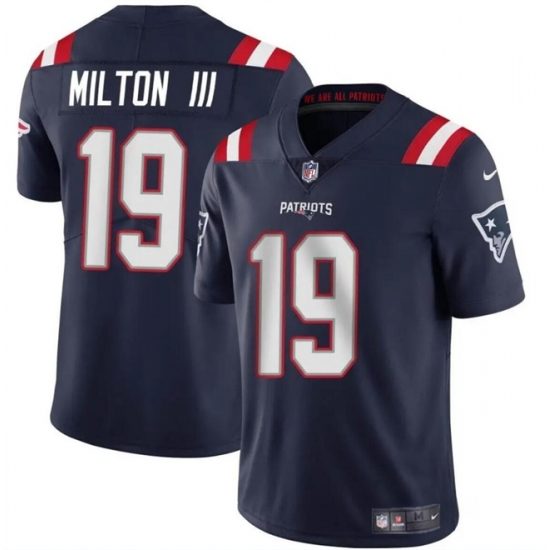 >Men's New England Patriots #19 Joe Milton III Navy 2024 Vapor Limited Football Stitched Jersey