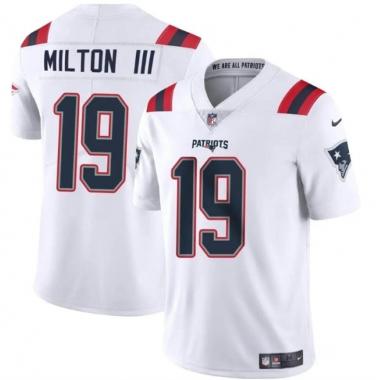 >Men's New England Patriots #19 Joe Milton III White 2024 Vapor Limited Football Stitched Jersey