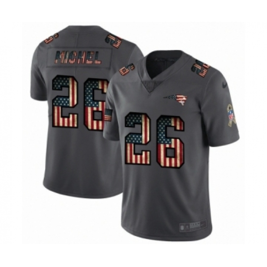 >Men's New England Patriots #26 Sony Michel Limited Black USA Flag 2019 Salute To Service Football Jersey