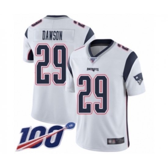 Men's New England Patriots #29 Duke Dawson White Vapor Untouchable Limited Player 100th Season Football Jersey