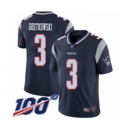 Men's New England Patriots #3 Stephen Gostkowski Navy Blue Team Color Vapor Untouchable Limited Player 100th Season Football Jersey
