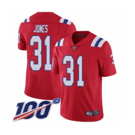 Men's New England Patriots #31 Jonathan Jones Red Alternate Vapor Untouchable Limited Player 100th Season Football Jersey