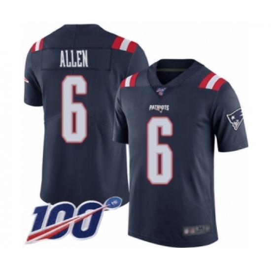 Men's New England Patriots #6 Ryan Allen Limited Navy Blue Rush Vapor Untouchable 100th Season Football Jersey