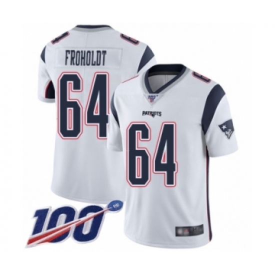 >Men's New England Patriots #64 Hjalte Froholdt White Vapor Untouchable Limited Player 100th Season Football Jersey