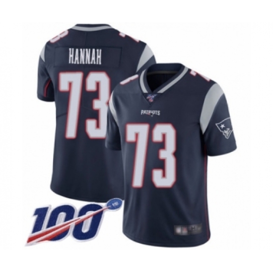 Men's New England Patriots #73 John Hannah Navy Blue Team Color Vapor Untouchable Limited Player 100th Season Football Jersey