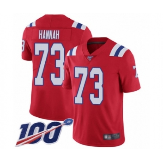 Men's New England Patriots #73 John Hannah Red Alternate Vapor Untouchable Limited Player 100th Season Football Jersey