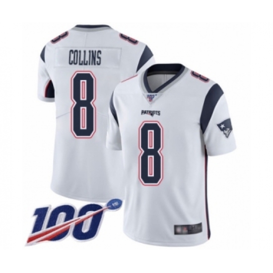 Men's New England Patriots #8 Jamie Collins White Vapor Untouchable Limited Player 100th Season Football Jersey