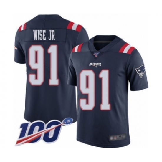 >Men's New England Patriots #91 Deatrich Wise Jr Limited Navy Blue Rush Vapor Untouchable 100th Season Football Jersey