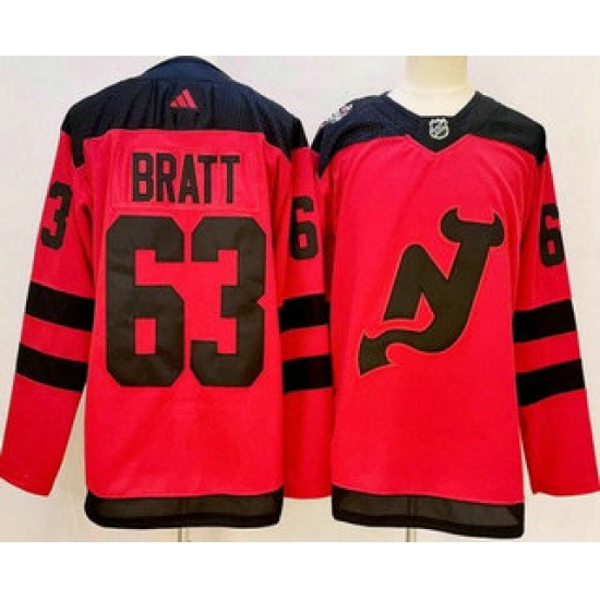>Men's New Jersey Devils #63 Jesper Bratt Red 2024 Stadium Series Authentic Jersey