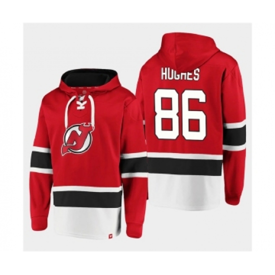 >Men's New Jersey Devils #86 Jack Hughes Red Ageless Must-Have Lace-Up Pullover Hoodie