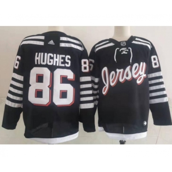 Men's New Jersey Devils #86 Jack Hughes adidas Black 2021-22 Alternate Primegreen Authentic Pro Player Third Jersey