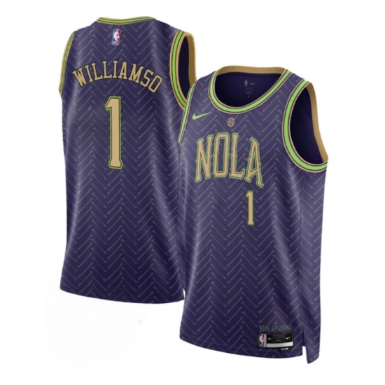 Men's New Orleans Pelicans #1 Zion Williamson Purple 2024-25 City Ediiton Stitched Basketball Jersey