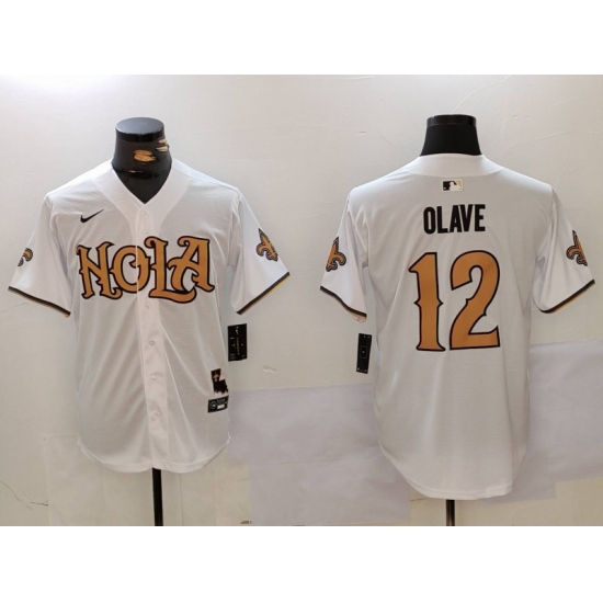 Men's New Orleans Saints #12 Chris Olave Number White Nola Baseball Jerseys