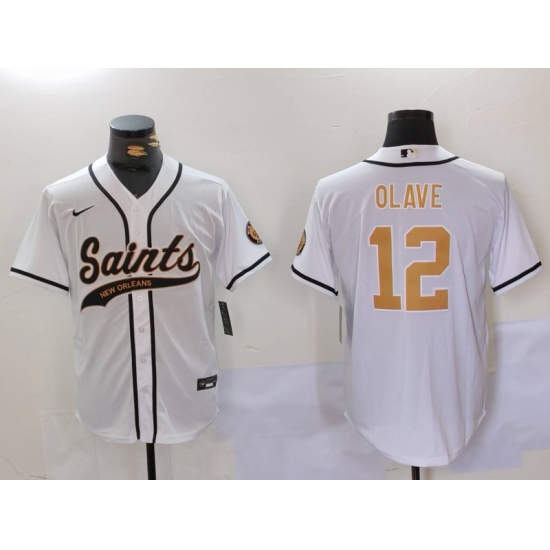 Men's New Orleans Saints #12 Chris Olave Number White Nola Baseball Jersey
