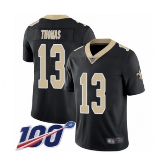 >Men's New Orleans Saints #13 Michael Thomas Black Team Color Vapor Untouchable Limited Player 100th Season Football Jersey