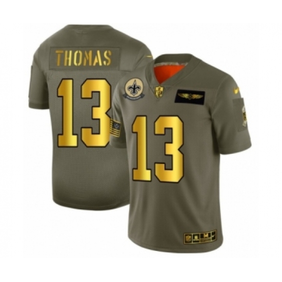 >Men's New Orleans Saints #13 Michael Thomas Limited Olive Gold 2019 Salute to Service Football Jersey
