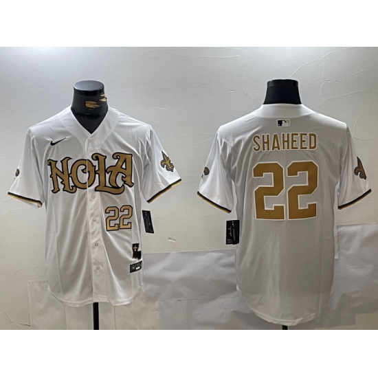 >Men's New Orleans Saints #22 Rashid Shaheed White Cool Base Stitched Baseball Jerseys