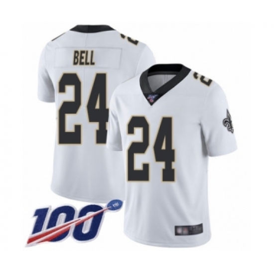 >Men's New Orleans Saints #24 Vonn Bell White Vapor Untouchable Limited Player 100th Season Football Jersey